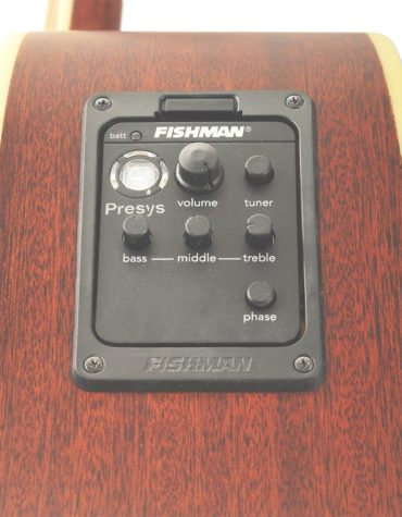 With two pickups you get your sound. In addition to a pickup in the bridge there is an internal mic capturing the full tone. Fishman Presys Electronics allows you to blend it and even includes a tuner.