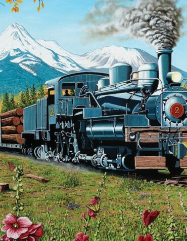 The logs are getting a great mountain view as steam train #2 goes Lumbering Along the tracks in this 1000 piece puzzle.
