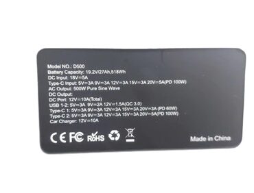 PORTABLE BUILT IN 500W INVERTER POWER GENERATOR | 518Wh LITHIUM BATTERY