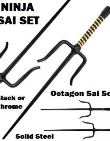 A set of traditional Sai Ninja weapons as used in the Okinawa martial Arts, made of all solid steel, available in Black or Silver and comes in a set of 2pcs