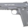 The Colt 1911 was built in 1900 by John Browning. In 1911, it was accepted to be the standard pistol for the US Army. In addition to the cal.45, there was also a cal.455 Auto version of the pistol, produced for Canada and the United Kingdom. The 1911 was used by the Polish army during the 2nd World War as a standard backup weapon. This limited edition “100th Anniversary” edition replica celebrates 100 years of the of the Colt 1911 A1’s success.