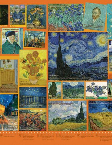 Learn about the life of Van Gogh in this 1000 piece collage celebrating his works. Informational quotes give a brief explanation of the painting giving one a deeper look into this artist’s world.